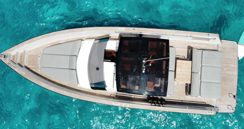 Equipped with Master cabin, Twins and bathroom, hydraulic swiming platform, telescopic bathing ladder, electric bimini integrated in top with stainless steel support